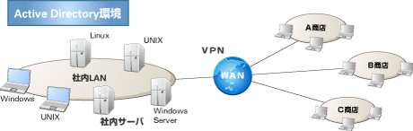 社内LANの構築はもちろん、機密性の高い VPN の設置やセキュリティを高める Firewall 構築、システム運用の軽減を効果的に実現する Active Directory 環境の構築など、信頼性の高いネットワークインフラ環境をご提供します。